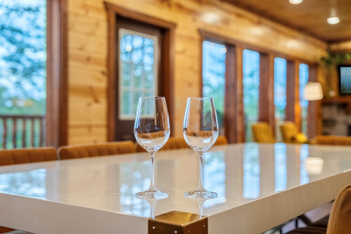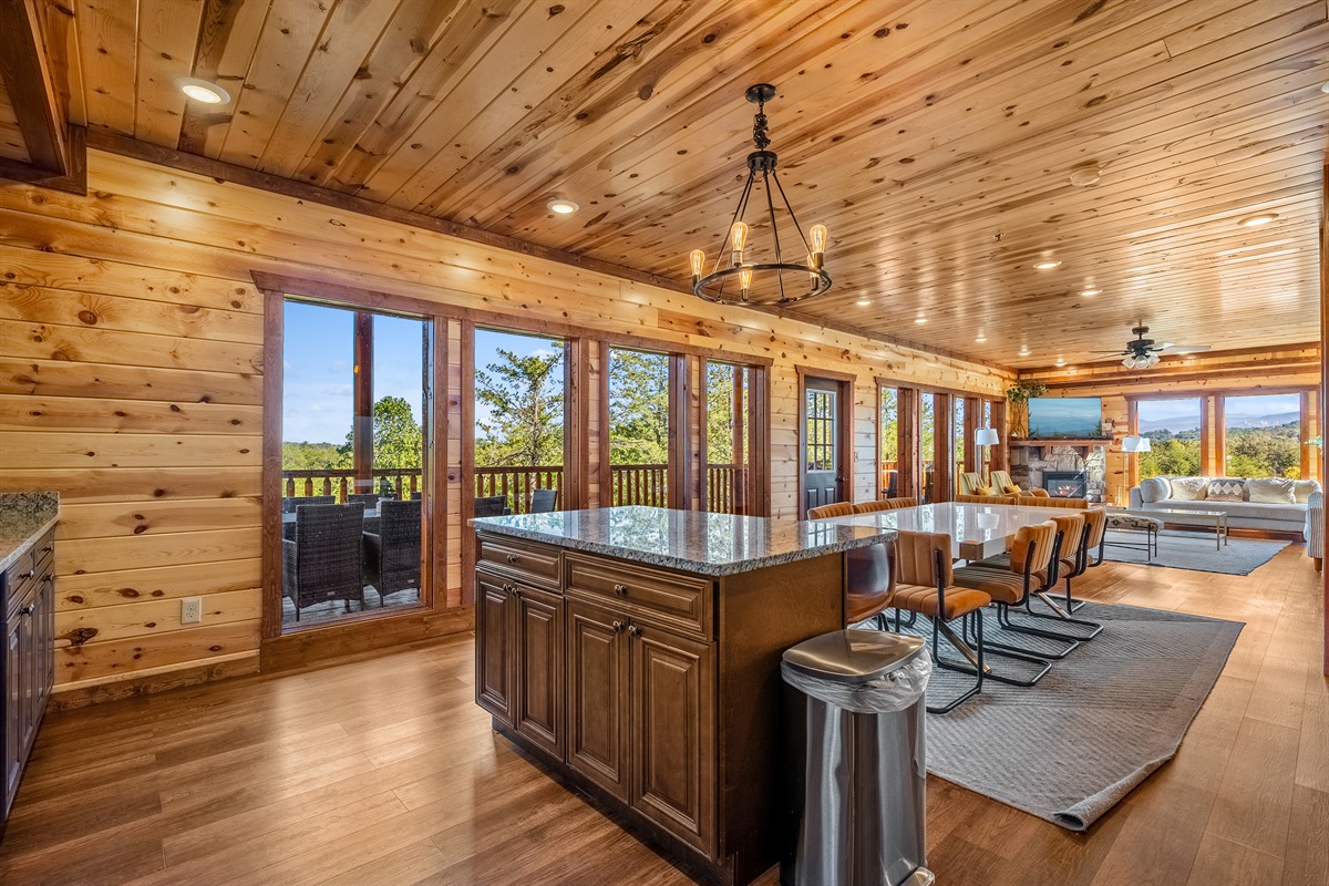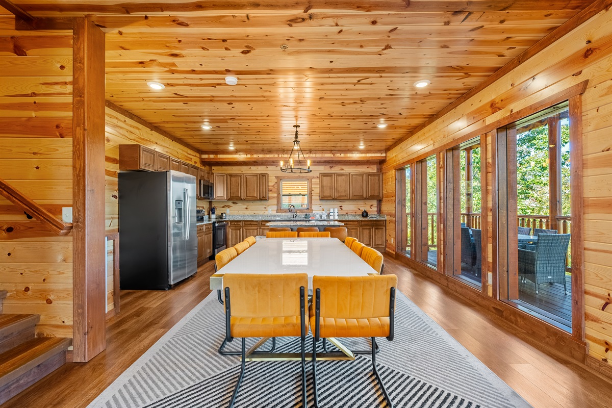 - Dining area just off the kitchen featuring two dining tables with seating for 10 with additional bar seating.