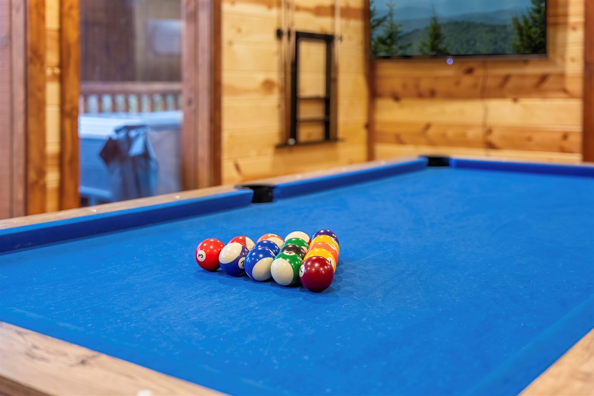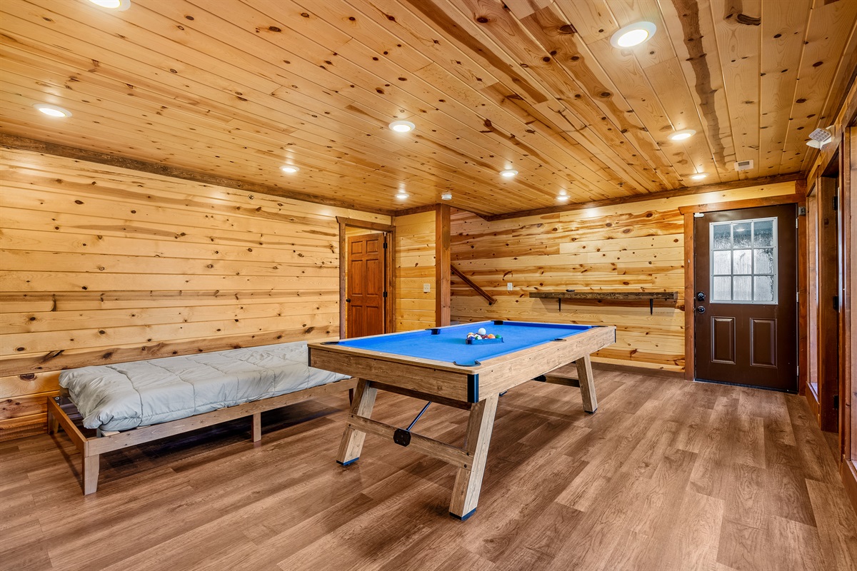 - Game room equipped with pool table and TV and additional sleeping option